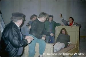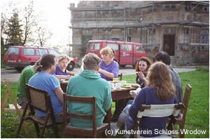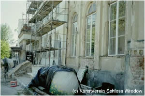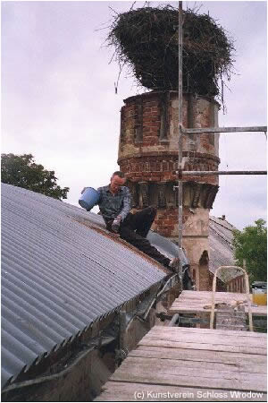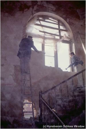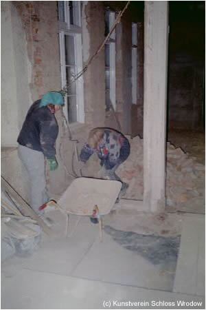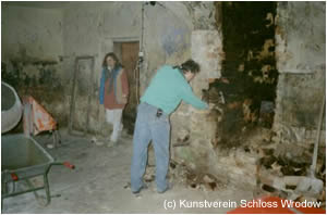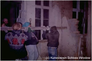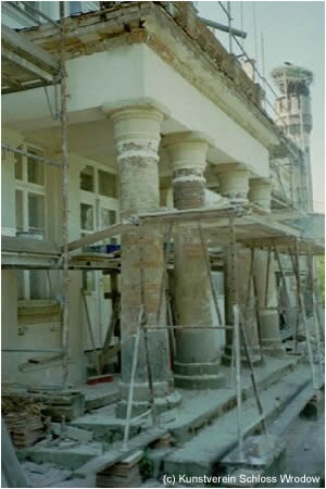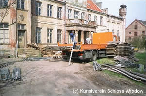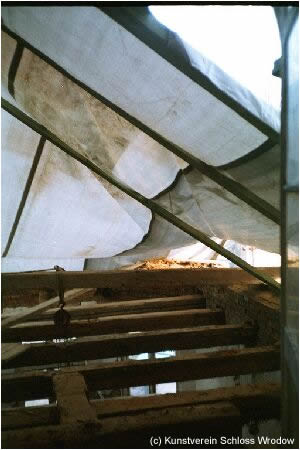 runter, Dielen abgeschliffen, Eckpavillon gebaut. 1993 in Wrodow